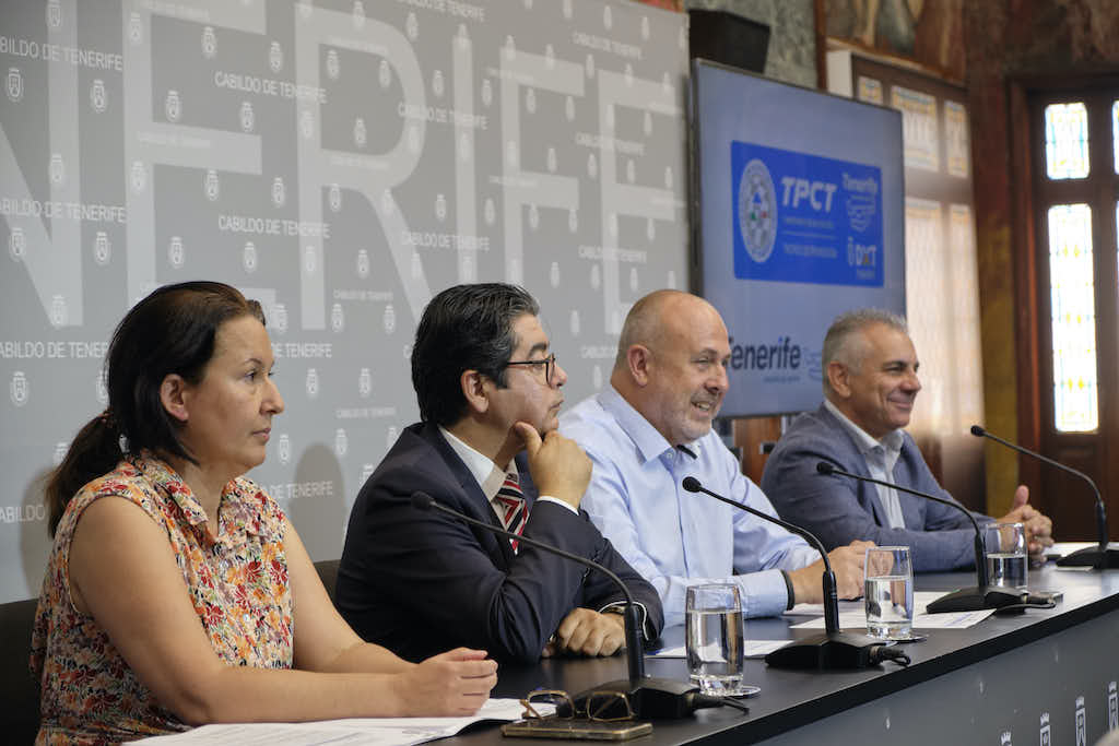 El presidente del Cabildo, Pedro Martín y el vicepresidente primero, Enrique Arriaga, junto con la consejera insular de Deportes, Concepción Rivero, y el presidente de la FIASCT, Francisco Negrín, explicaron hoy los detalles de este patrocinio, que cuenta con una aportación del Cabildo de 15.000 euros.