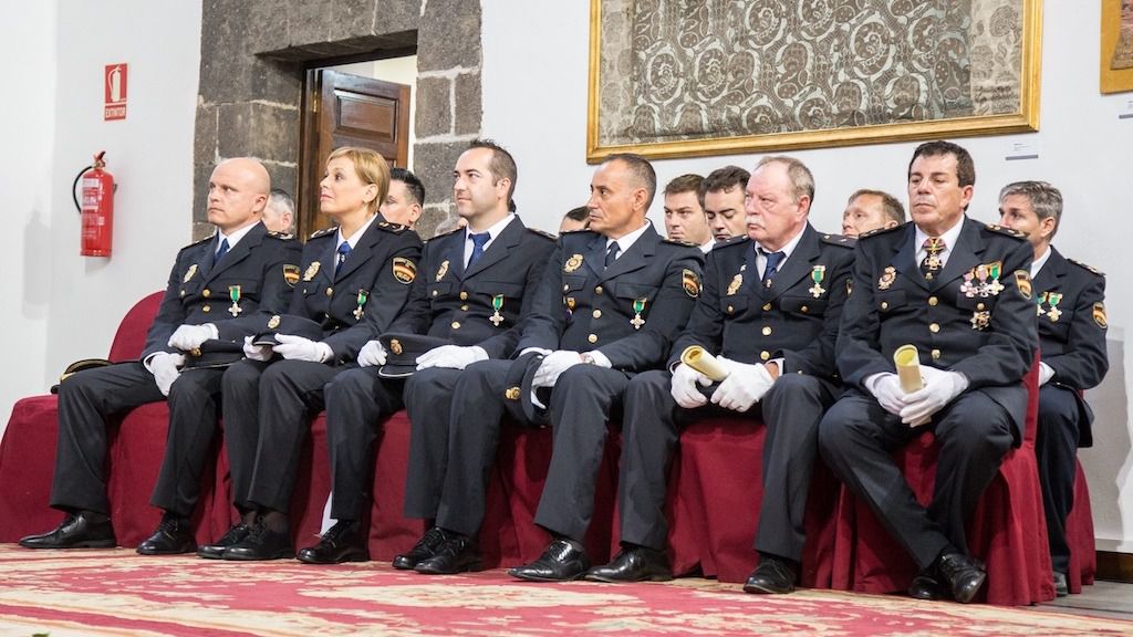 En el acto institucional se impusieron cinco “Medallas al Órden del Mérito Policial Distintivo Blanco” a un inspector jefe, un oficial y 3 policías Paralelamente, se entregaron reconocimientos a las personas que durante este último año han colaborado activamente con la Policía Nacional, entre ellas, Awa Diop Pathe Ndiaye, intérprete, Isidoro Meneses Pérez, jefe de protocolo del ayuntamiento de Adeje y a la empresa Fox Seguridad, de Andrés Montiel Molina.