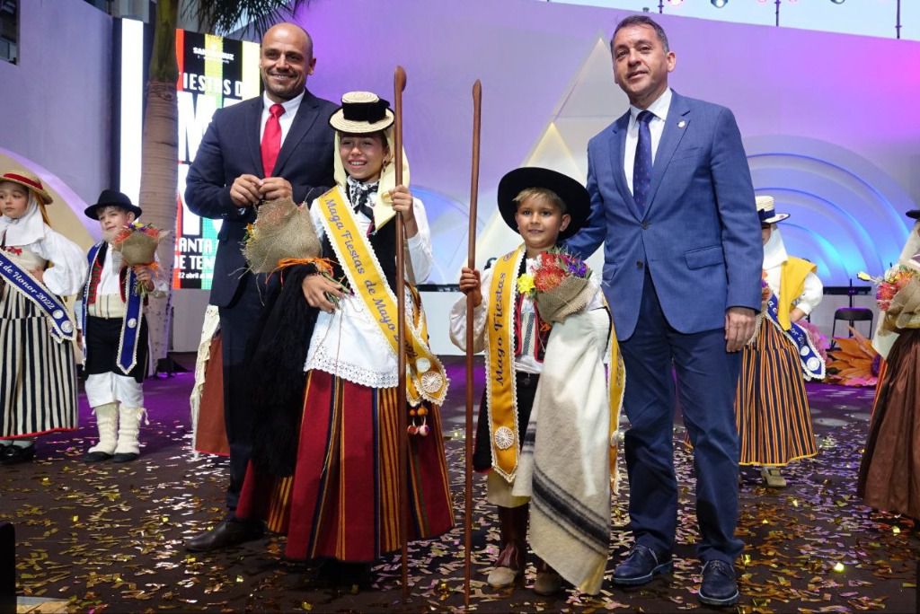 Alán Martín Hernández y Gabriela Cruz Hernández son los nuevos Mago y Maga Infantil de las Fiestas de Mayo de Santa Cruz de Tenerife. Los menores en representación de la Asociación Cultural Guachipanducitos y a la Agrupación Musical Chaxiraxi, respectivamente; iban ataviados con los trajes de campesino de Tenerife de finales del siglo XIX y principios del XX y de mujer de Tenerife en traje de transición