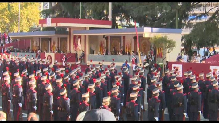 El presidente del Gobierno, Pedro Sánchez, ha recibido este martes sonoros abucheos y gritos de "dimisión" al inicio y al final del desfile que se celebra en el centro de Madrid por el Día de la Fiesta Nacional, pese a la distancia que ha separado al público de las tribunas presidenciales y su tardía llegada, casi a la vez que el coche oficial de los Reyes