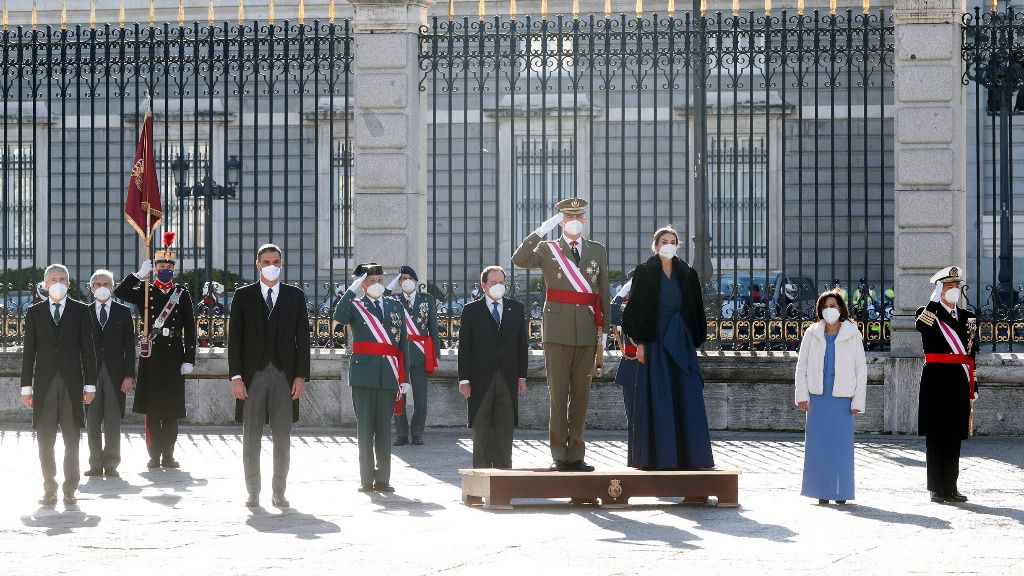 Felipe VI ha tenido estas palabras de recuerdo para las víctimas del terrorismo durante la celebración de la Pascua Militar en el Palacio Real de Madrid, un acto castrense marcado de nuevo por la pandemia que este año cumple el 240 aniversario de su creación por el Rey Carlos III.