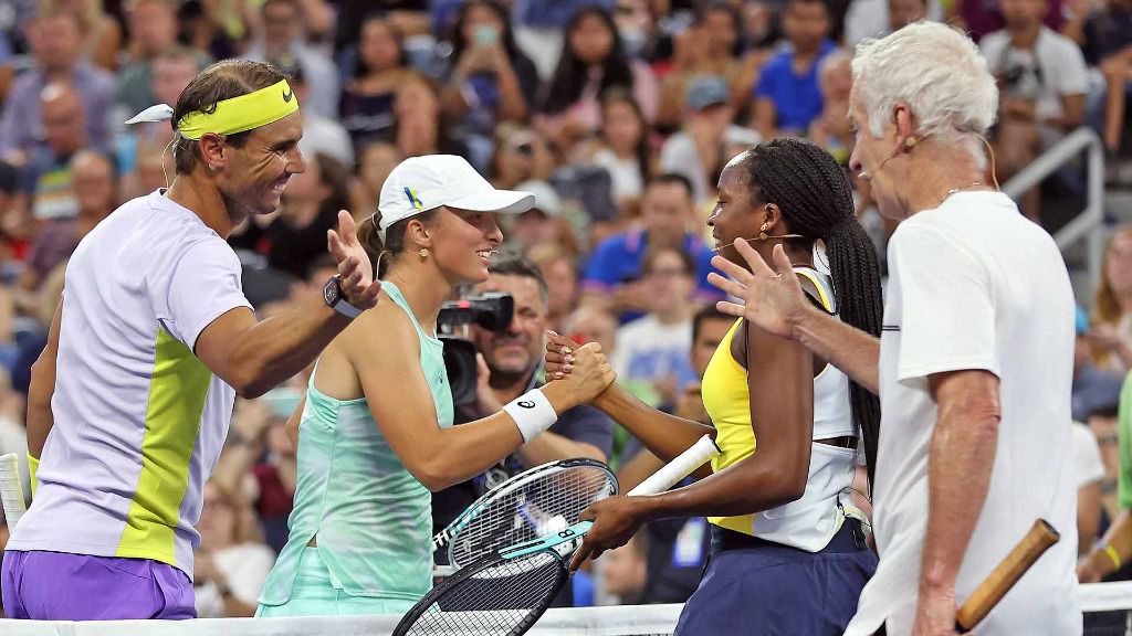 En el primer partido de la tarde, Nadal formó pareja de dobles con Swiatek en un encuentro en el que jugaron contra McEnroe y Gauff.