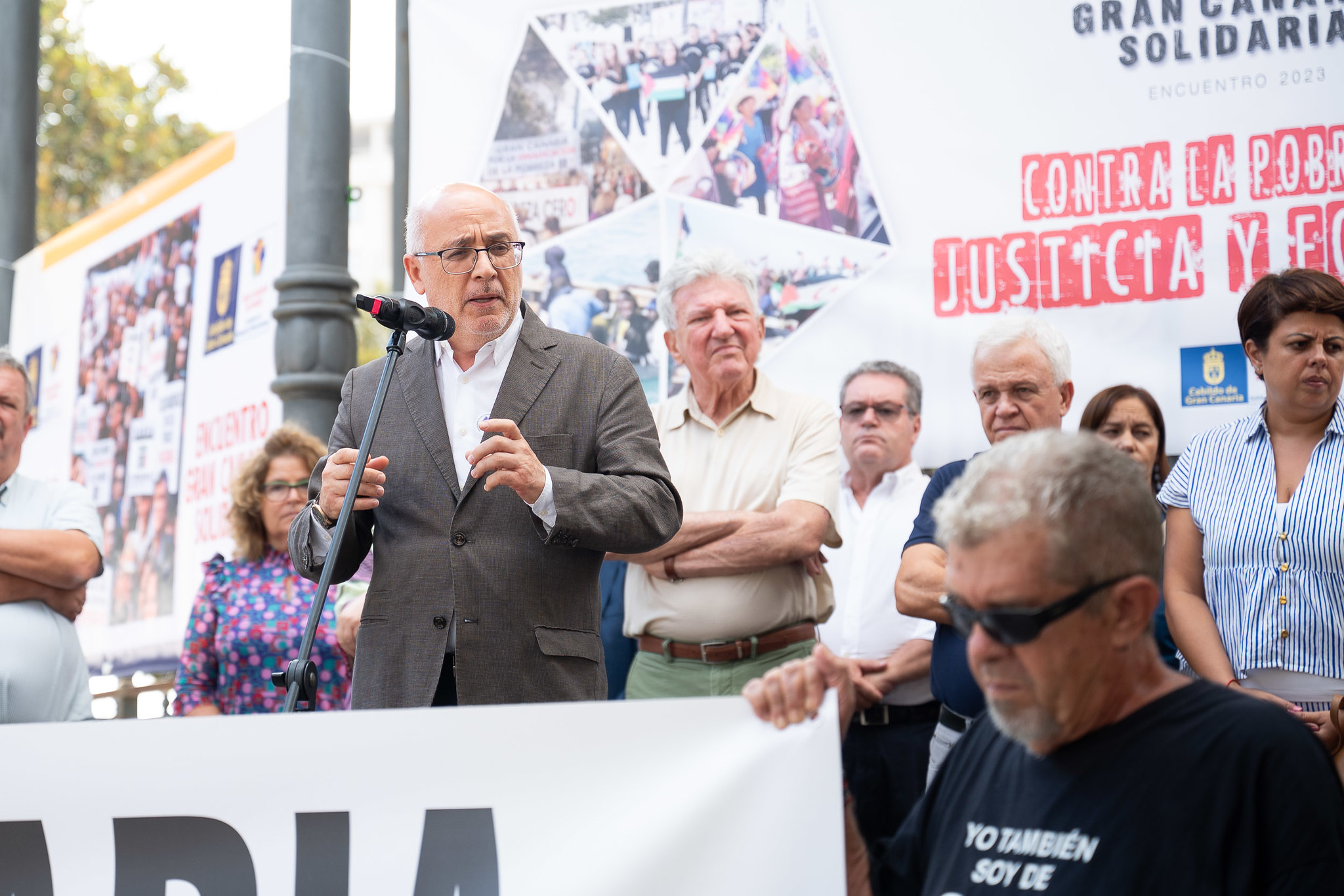 El presidente del Cabildo de Gran Canaria, Antonio Morales, llamó hoy a la ciudadanía y a las instituciones y entidades para continuar manteniendo el arduo trabajo que se lleva a cabo cada día para erradicar la pobreza de todos los rincones del Planeta, en la apertura del Encuentro ‘Gran Canaria Solidaria’ 2023, que se celebró en el Parque de San Telmo de la capital grancanaria, con motivo del Día Internacional de Erradicación de la Pobreza, bajo el lema ‘Contra la pobreza. Justicia y equidad’.