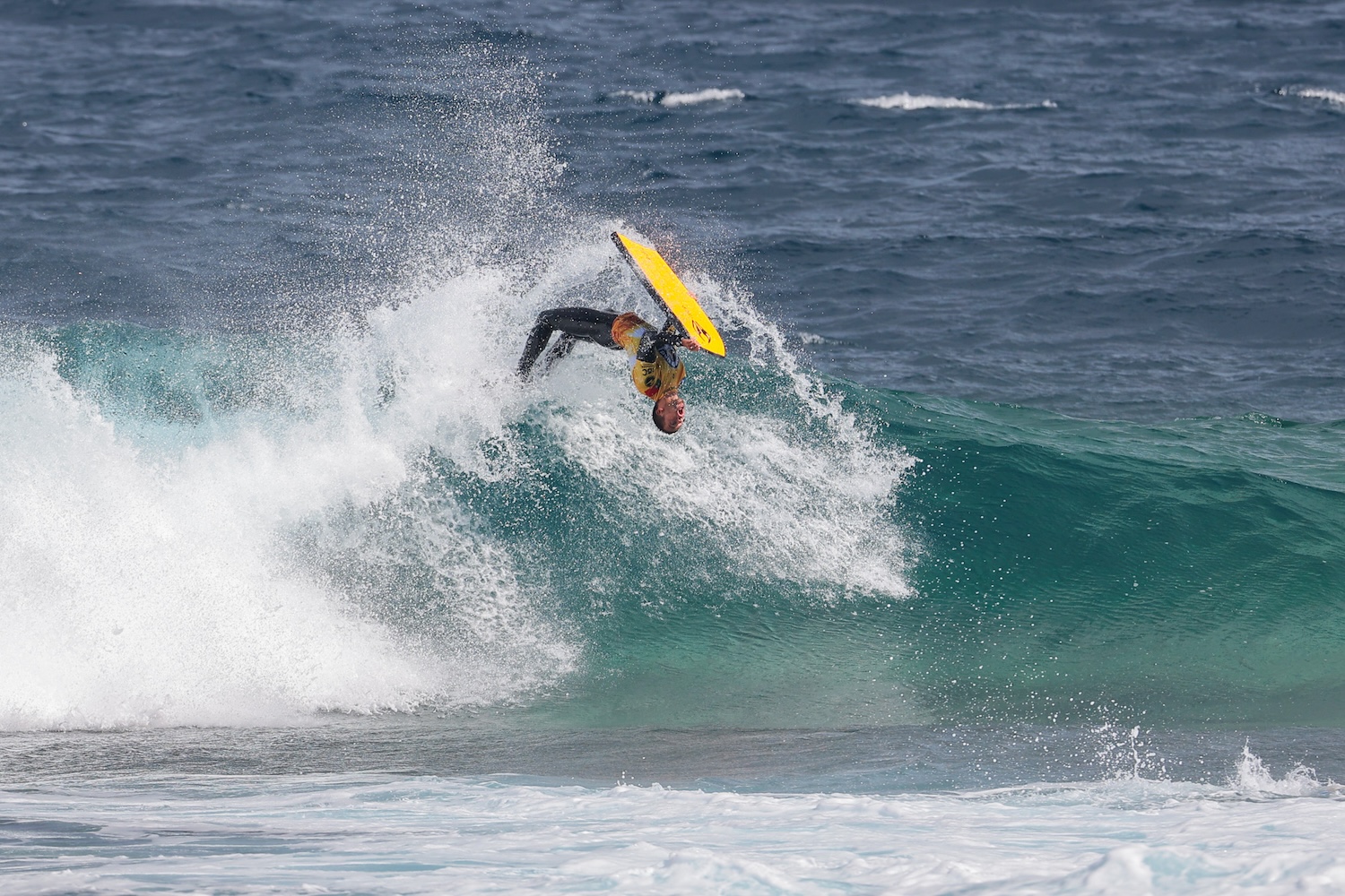 El Gran Canaria Frontón King celebró este miércoles su cuarta jornada de competición después de cuatro días de descanso por la falta de condiciones óptimas. Hoy por fin subió algo la fuerza y, aunque el viento no quiso sumarse a la fiesta y el mar estuvo algo más desordenado, las olas permitieron retomar la acción en la última prueba del IBC World Tour de bodyboard, dejando en cinco los aspirantes al título mundial en la categoría absoluta: de los seis que comenzaron, cayó el rider marroquí Badr Eddine, mientras que los brasileños Uri Valadão y Gabriel Braga lograron salvarse en la repesca.
