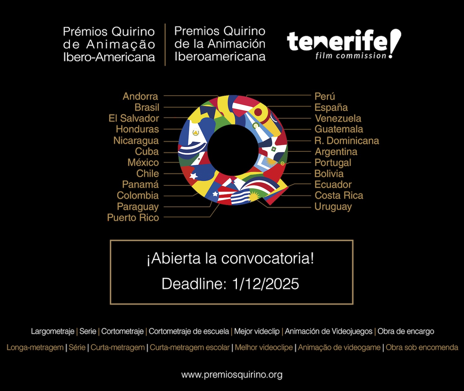 Con la apertura de su convocatoria, los Premios Quirino de la Animación Iberoamericana han puesto en marcha su novena edición, cuya gala de entrega de premios tendrá lugar el 17 de abril del próximo año en Tenerife, en la ciudad de Santa Cruz. Creados en 2018, estos galardones buscan poner en valor el talento y la industria de la animación iberoamericana, además de fomentar redes profesionales a ambos lados del Atlántico y contribuir a la construcción de un mercado iberoamericano de la animación. La novena edición de los Premios Quirino cuenta con el patrocinio principal del Cabildo de Tenerife a través de Turismo de Tenerife y la Tenerife Film Commission.