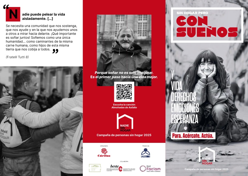 Durante el acto se hará lectura del Manifiesto de la campaña, que hace hincapié en las dramáticas cifras de la exclusión residencial en nuestro país y pone de manifiesto, una vez más, que el sinhogarismo no es un problema individual, sino que concierne a toda la sociedad.