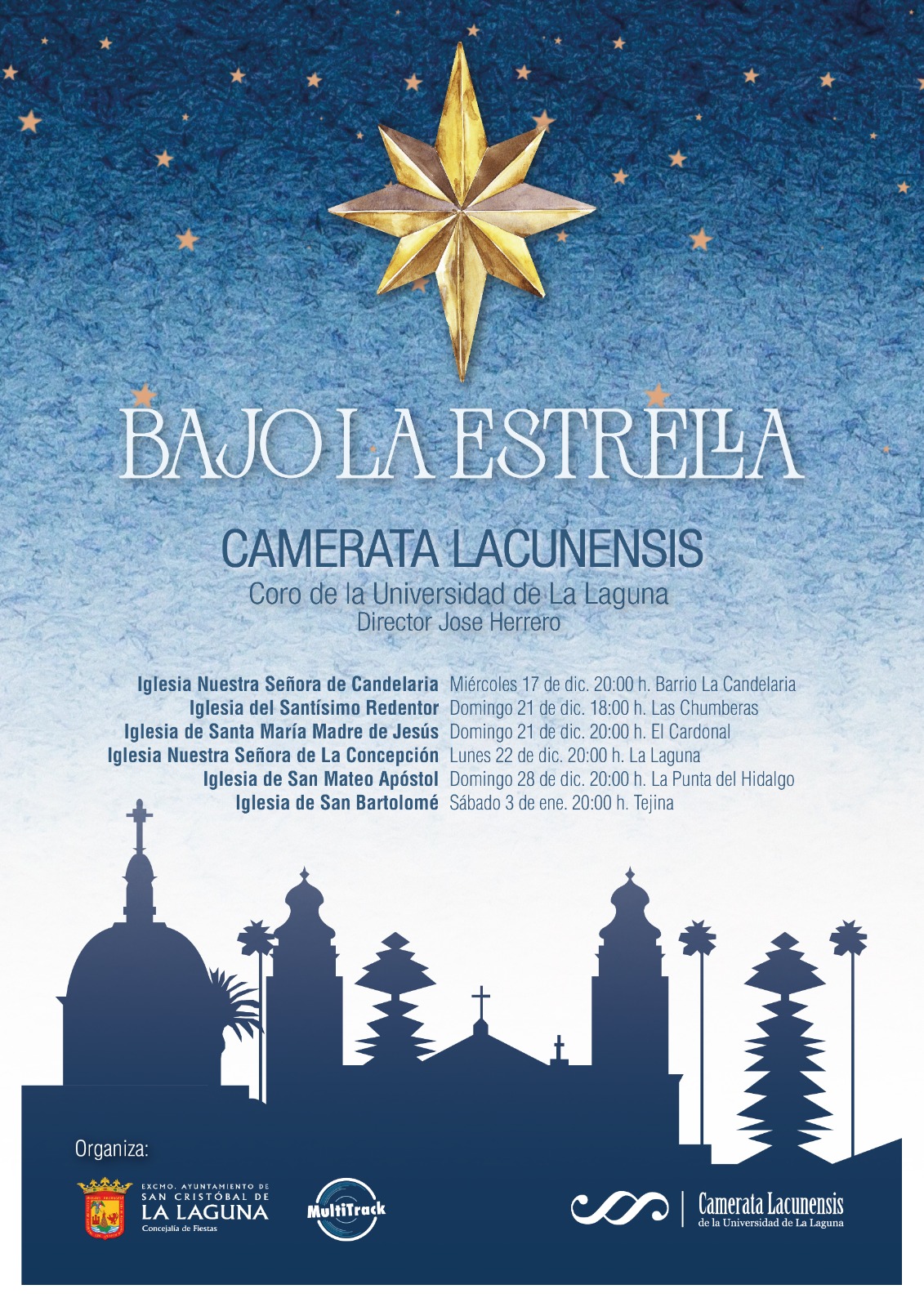 Dirigida por José Herrero, Camerata Lacunensis presenta Bajo La Estrella, un espectáculo que fusiona música coral contemporánea, movimiento escénico y textos narrativos interpretados por los propios integrantes del coro. La propuesta invita al espectador a un recorrido simbólico por los elementos esenciales de la Navidad, desde la estrella hasta el nacimiento, a través de una puesta en escena cercana e inmersiva.