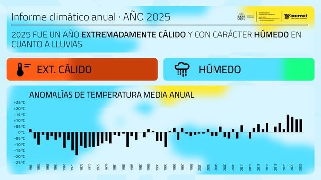 La Agencia Estatal de Meteorología (AEMET), bajo la supervisión del Ministerio para la Transición Ecológica y el Reto Demográfico (MITECO), ha dado a conocer un informe sobre las características climáticas de 2025 en España. Este año se ha destacado por ser extremadamente cálido y presentar un carácter húmedo, aunque las precipitaciones se han distribuido de manera irregular tanto geográficamente como temporalmente.