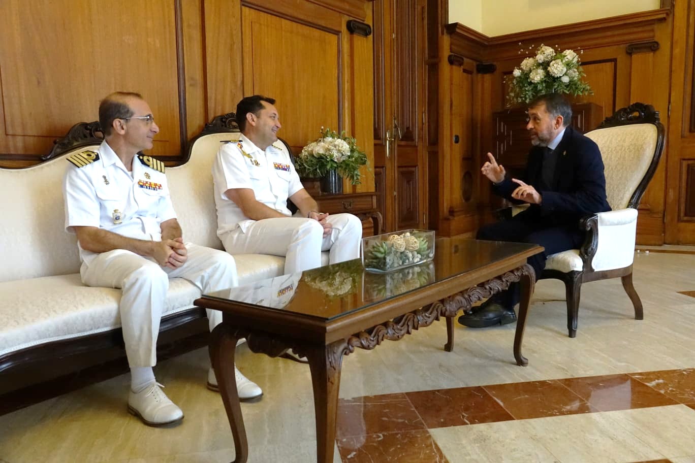 El alcalde, José Manuel Bermúdez, recibió esta mañana, en el Ayuntamiento capitalino a oficiales de la embarcación de la Armada española, que llegó al puerto chicharrero con 73 guardiamarinas a bordo, además de la tripulación.