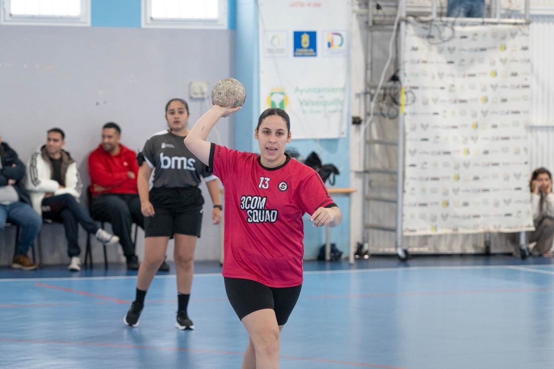 El 3COM Squad Valsequillo logró este jueves una contundente victoria por 36-24 frente al DOOS Óptica Moya Tilover, en el encuentro correspondiente a la Jornada 10 de la Liga Territorial Femenina, disputado en el Pabellón Municipal El Mercadillo.