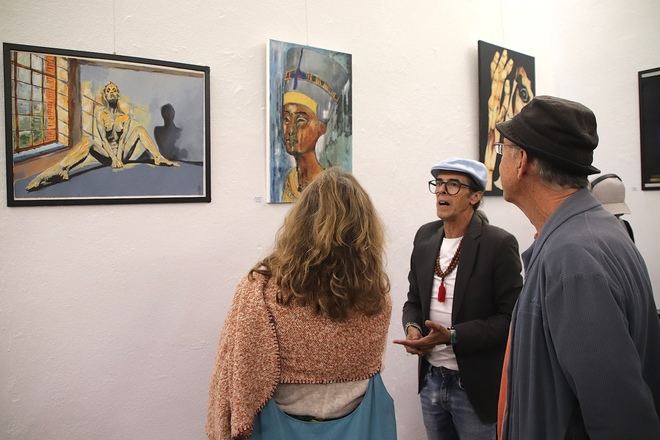 “La exposición descubre la grandeza y versatilidad creativa del pintor, y el encuentro con él, su personalidad cercana y extrovertida que nos permite acercarnos más a la profundidad de su obra”, anota elconcejal de Cultura de Yaiza, César Rijo, presente en la tarde inaugural.
