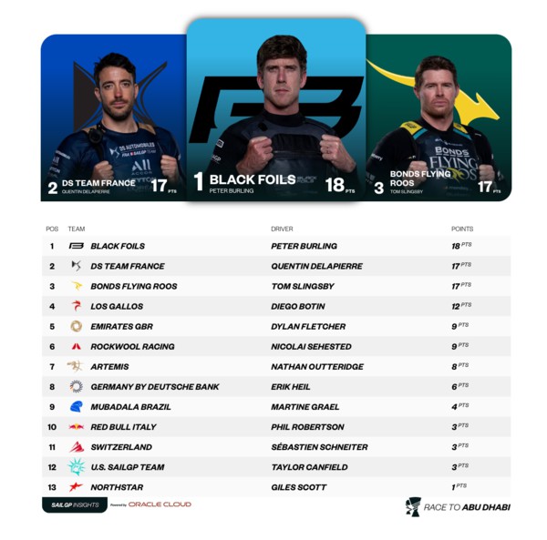 Hasta entonces, la jornada reunía todos los requisitos para ofrecer un día de carreras de sobresaliente: alta velocidad, maniobras de infarto y trece equipos compitiendo por la gloria en la ‘Ciudad de las Velas’. El Spain SailGP Team ofreció una actuación muy sólida en su vuelta a la competición, con un cuarto puesto en la primera manga y un discutido sexto en la segunda (después de recibir una penalización en la última boya). Pilotado por Diego Botín, mostró un buen nivel competitivo desde la primera salida, peleando de tú a tú con Nueva Zelanda, Australia y Francia, como en las dos temporadas anteriores. Emirates GBR, por su parte, no tuvo su mejor día.