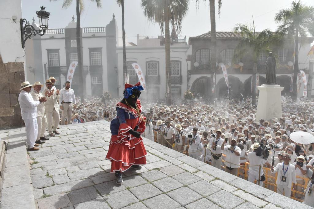 El momento culminante llegó con la aparición de la Negra Tomasa, que descendió acompañada por la conga hasta el atrio de El Salvador, desatando el júbilo colectivo entre aplausos, música y una marea blanca que volvió a convertir la ciudad en escenario de una celebración multitudinaria.