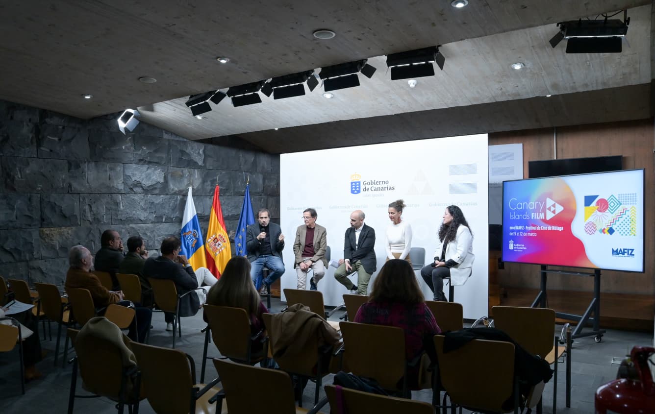 Los detalles de la presencia canaria en Málaga 2026 se han dado a conocer hoy en un acto informativo en la sede de Presidencia del Gobierno de Canarias, en el que intervinieron Alfonso Cabello, viceconsejero de Presidencia y presidente de Proexca; Cristóbal de la Rosa, director general de Innovación Cultural e Industrias Creativas; Natacha Mora, coordinadora de Canary Islands Film; Guillermo Ríos, cineasta y director de CIIF Market; y Yadira Ávalos, productora de Naif Films.