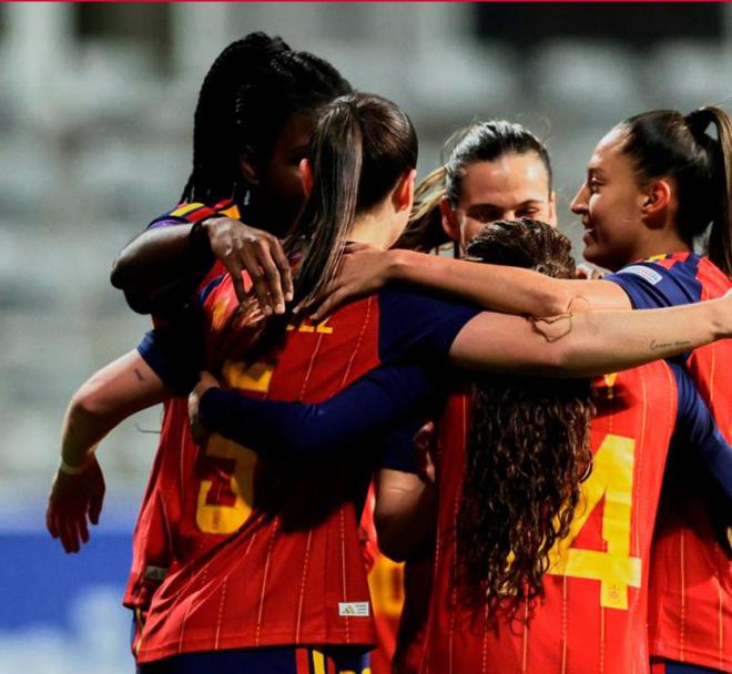 El dominio de España se traducía en varios saques de esquina a favor con remates de cabeza que se marchaban por encima de la portería. Tras un rechace a un remate de Athenea era Lucía Corrales la que le pegaba con potencia aunque su balón se marchaba fuera.