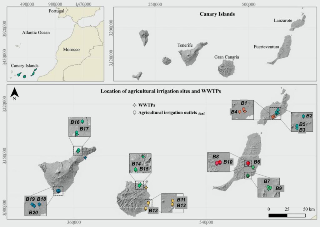 El artículo “A One Health perspective: Occurrence study of carbapenem-resistant bacteria and other emerging pathogens from recycled wastewater used in agriculture”, publicado en la revista Microbiology Research y en el que participa María Martínez-Ruíz, investigadora del Departamento de Obstetricia y Ginecología, Pediatría, Medicina Preventiva y Salud Pública, Toxicología, Medicina Legal y Forense y Parasitología de la Universidad de La Laguna, subraya la necesidad de incorporar parámetros complementarios de monitoreo. Esto supone aplicar medidas adecuadas posteriores al tratamiento, para proteger la salud pública y la sostenibilidad agrícola en islas con escasez hídrica.