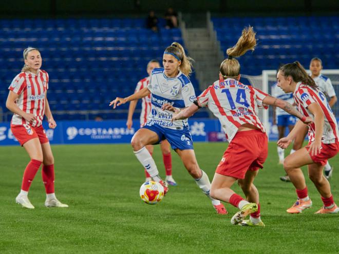La segunda mitad comenzó con la misma dinámica, con las tinerfeñas intentando acercarse al área, pero en el minuto 51, Jensen adelantó al Atlético de Madrid Femenino, complicando la misión de remontada de las tinerfeñas. El Costa Adeje Tenerife Egatesa reaccionó con cambios: en el 56, Carlota Suárez entró por Gramaflia, mientras Elba lo intentaba en el 58 con un disparo desviado. Iratxe también probó fortuna, aunque su remate no encontró portería.