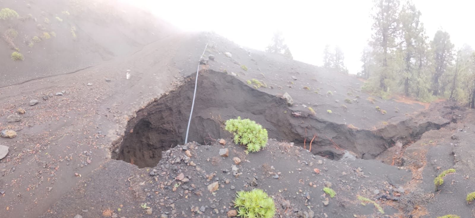 Asimismo, se ha detectado un socavón de gran envergadura en la HI-45, la carretera de El Julan, con riesgo de hundimiento, así como importantes acumulaciones de material en diferentes tramos que dificultan la circulación.