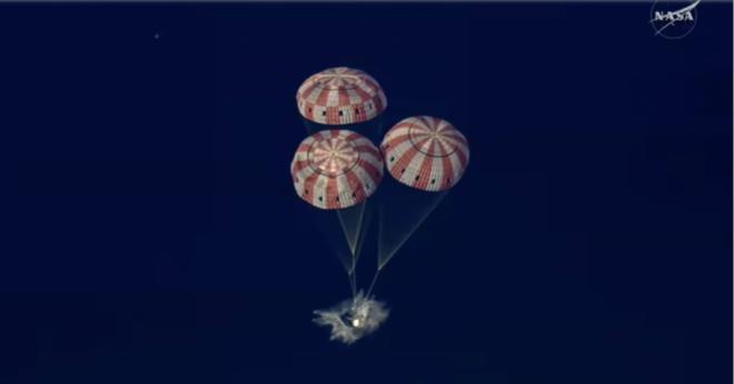 A las 17:07 horas (hora local), frente a San Diego, se llevó a cabo un amerizaje asistido por paracaídas de la nave Orion, que transportaba a los cuatro astronautas de la misión, concluyendo así una misión de diez días tras descender a través de la atmósfera terrestre.