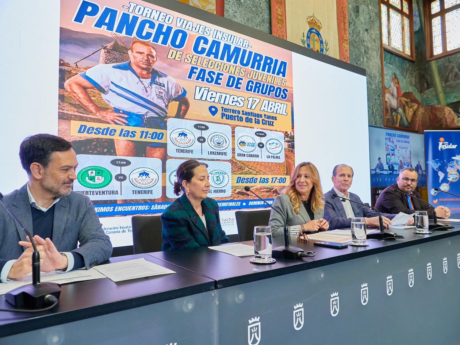 El torneo juvenil de lucha canaria Pancho Camurria vuelve a Tenerife, tras seis años sin disputarse en la isla, y quince sin celebrarse en el norte. El campeonato regional, que tendrá lugar del 17 al 19 de abril en el Puerto de la Cruz y Santa Úrsula, fue presentado este lunes en el Salón Noble del Cabildo de Tenerife. Una competición, que tendrá a a la Selección tinerfeña como vigente campeona defendiendo en casa el título ante otros cinco combinados insulares: La Palma, Gran Canaria, El Hierro, Fuerteventura y Lanzarote. Con la fase previa y semifinales, a disputar el viernes y sábado en el terrero portuense Santiago Yanes, y con la gran final del domingo en Santa Úrsula, se espera un fin de semana con gran afluencia de público. El norte de la Isla se convertirá en el epicentro de las mayores promesas del deporte vernáculo.
