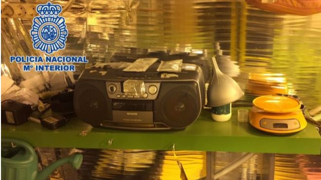 En la habitación en la que estaba enclavado el cultivo, los investigadores descubrieron un equipo de música que reproducía sonidos de la naturaleza. Los responsables de la instalación buscaban impulsar el crecimiento de las plantas al son de la música relajante, al objeto de que estas creciesen en un contexto desprovisto de estrés. Asimismo, los agentes localizaron en el invernadero ocho ventiladores, un aparato de aire acondicionado, un filtro de carbono, seis portalámparas, un cuadro eléctrico modificado y numerosos productos específicos para el cultivo, mantenimiento y floración de la marihuana.