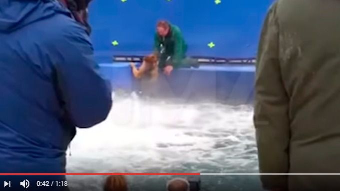 En el vídeo puede verse cómo un pastor alemán se resiste con todas sus fuerzas a ser introducido en torrente artificial.De fondo, se escuchan comentarios jocosos. A continuación, y a causa de la fuerza del caudal, esos comentarios se transforman en gritos que urgen a sacar al perro, que corre serio riesgo de ahogamiento. Hércules está sano y salvo, pero las cosas podrían haber acabado muy mal para él.