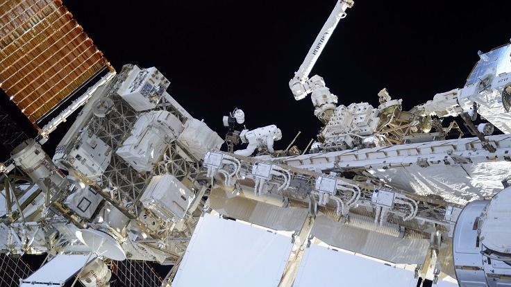 El dúo pasó cinco horas y 58 minutos fuera de la Estación Espacial Internacional para completar una actualización de las baterías que almacenan la energía procedente de los paneles solares de la estación.