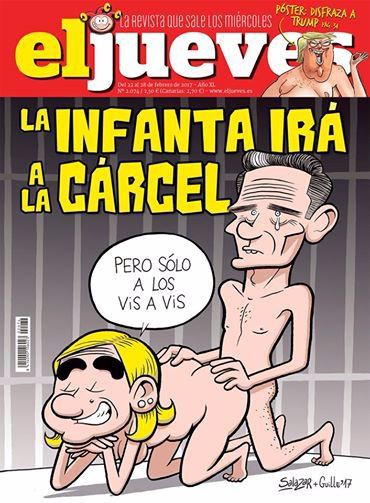 Ahora, una década después, tocan algo más abajo en la línea de relevancia de la Familia Real, pero sí se atreve a repetir escena, esta vez con la infanta Cristina e Iñaki Urdangarín. Se trata de una revancha histórica para representar así una supuesta escena donde se parodia una visita de la infanta a su marido en prisión, ya que Urdangarín acaba de ser condenado a 6 años y 3 meses de prisión por el 'caso Nóos'. Más allá de lo humorístico, 'El Jueves' se la juega de nuevo y su portada dará mucho que hablar. Al fin y al cabo ésa es la clave de ese tipo de publicaciones: provocar mediante la palabra y el humor inteligente o crítico para remover conciencias y pensamientos políticos.