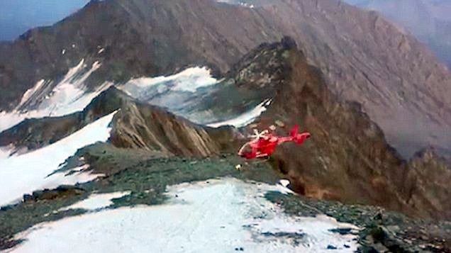 Este es el momento en el que un helicóptero de rescate, enviado para salvar a un alpinista que sufría problemas de corazón, evitó por los pelos cortar con las palas a un miembro del equipo de rescate en la montaña más alta de Austria.