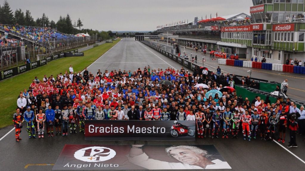 Todo el campeonato del mundo de motociclismo, con sus principales figuras y responsables al frente, ofreció un sentido y multitudinario minuto de silencio en homenaje al recientemente fallecido Ángel Nieto.