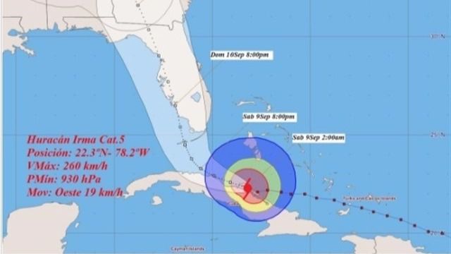 Durante la noche del viernes al sábado, la tormenta ha aumentado sus vientos máximos sostenidos de hasta 260 kilómetros por hora, con rachas superiores y una presión mínima de 924 hectopascales, por lo que nuevamente ha sido catalogado como huracán categoría cinco de la escala Saffir-Simpson. 'Irma' está avanzando hacia el oeste a unos 20 kilómetros por hora.