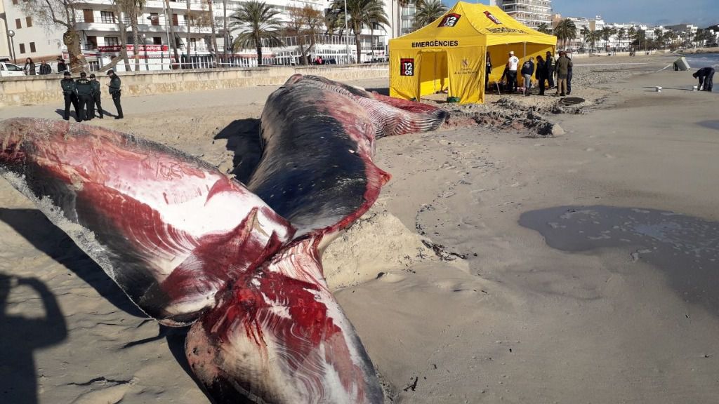 Desde las 09.00 horas, un operativo formado por biólogos, veterinarios y técnicos está actuando para realizar la exploración del cuerpo del animal. Junto a ellos también están presentes agentes de la Conselleria de Medio Ambiente, Agricultura y Pesca.