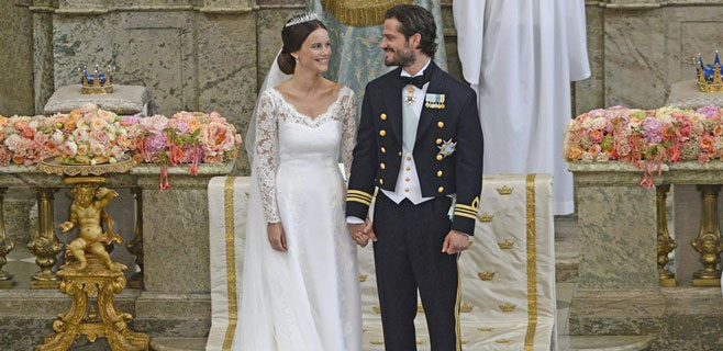 Como manda la tradición, Carlos Felipe ha llegado primero para esperar en el altar a su prometida. La emocionada novia llegaba minutos después al palacio real con un precioso vestido en pico y manga larga de encaje. Una ceremonia muy romántica en la que las miradas de los novios demostraban el amor que se profesan. Fix you, de Coldplay, ha sido una de las canciones protagonistas de este enlace donde la princesa Estelle, la hija de Victoria de Suecia, ha sido una de las damas de honor.