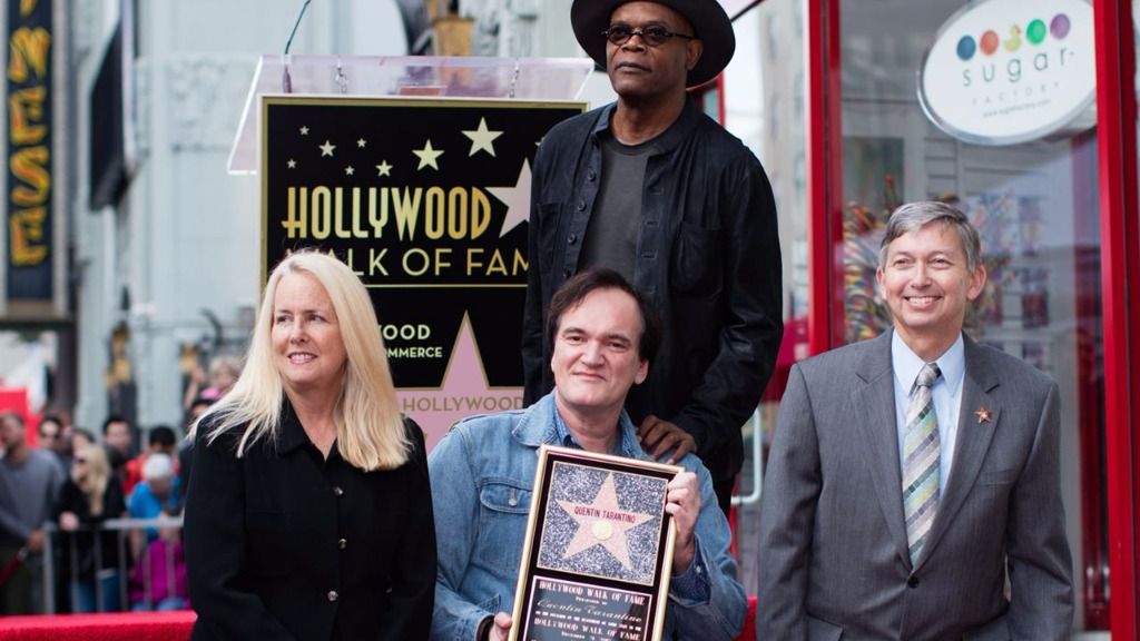 "Esto es realmente genial, me debo haber convertido en un pez gordo", afirmó Tarantino, ganador de dos Oscar, al descubrir su estrella en el Paseo de la Fama junto al legendario Teatro Chino de Los Angeles. En su intervención, el director recordó las primeras veces que, hace ya muchos años, recorrió la acera en la que ahora estará su estrella con su nombre. El recuerdo más lejano del que habló Tarantino fue el estreno de Diamantes para la eternidad. Arropando al director en este evento estuvo el reparto de su última película, 'Los odiosos ocho' y otros actores fundamentales en la filmografía de Tarantino como Zoe Bell, Demian Bichir, Clifton Collins Jr., Walton Goggins, Pam Grier, Jennifer Jason Leigh, James Parks, Tim Roth, Craig Stark y también el director Edgar Wright. Entre ellos también estaba Samuel L. Jackson, que ha colaborado con Tarantino en múltiples ocasiones y que tomó la palabra para presentar al homenajeado. En su breve discurso Jackson aseguró que "la mayoría de sus películas tienen un mensaje" y que "él quiere hacer películas que te hagan feliz, Quentin ve el negocio de las películas como un entretenimiento", afirmó el actor.