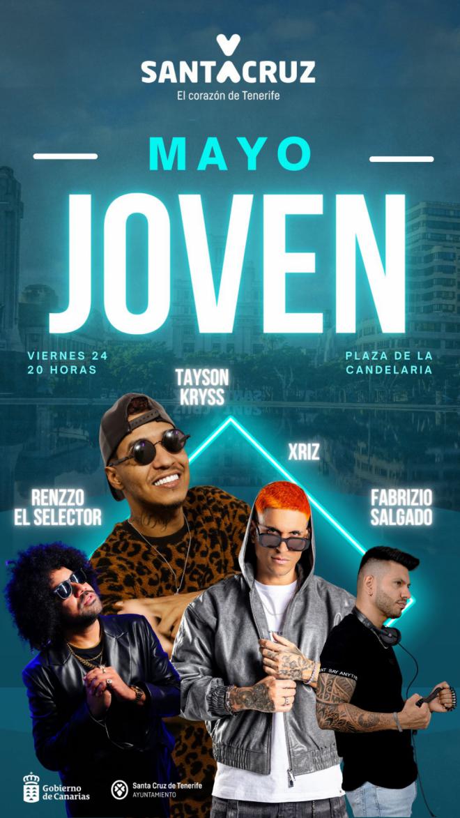 Mayo Joven comenzará a las 20.00 horas y lo hará con la presencia de uno de los artistas del momento, Tayson Kryss, compositor de uno de los temas más escuchados en todo el mundo, “Buscando money”, y que lo ha convertido en un fenómeno mundial a través de la plataforma TikTok, donde cuenta con más de un millón de vídeos. Además, ha conseguido el récord de reproducciones, con más de 100 millones, en las distintas plataformas musicales. La actuación de este artista cubano será la única que ofrezca en Tenerife dentro de la gira que le trae hasta Europa.