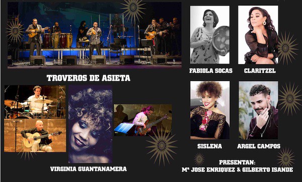 El grupo Troveros de Asieta contará mañana con la colaboración de las artistas Claritzel y Fabiola Socas. El grupo que lidera Francis Concepción cuenta con ocho trabajos discográficos y ha colaborado con destacadas figuras internacionales de la canción. Son una de las fundaciones más relevantes de música cubana hecha en Europa. En 2012 lograron el premio internacional Cubadisco.