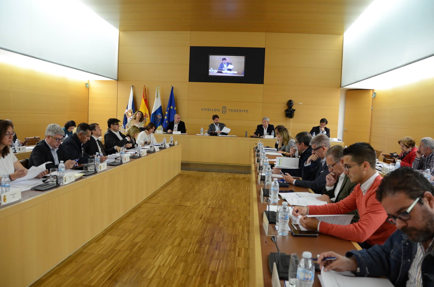El presidente del Cabildo, Carlos Alonso, presentó a los alcaldes de la Isla el Marco Estratégico de actuaciones que definirán la planificación presupuestaria y el desarrollo insular que plantea esta Corporación para los próximos diez años. En la reunión del CIAT, celebrada en el día de ayer [jueves 5] los alcaldes conocieron la propuesta del Cabildo cuyos contenidos se pretenden consensuar con los ayuntamientos y con la ciudadanía a través de la plataforma www.participatenerife.es. “Se trata de un plan ambicioso, cuya inversión estimada es de 200 millones anuales que requiere el esfuerzo de todas las administraciones (Cabildo, Ayuntamientos y Gobierno de Canarias) y que contempla la asignación de recursos tanto por parte del Cabildo como los que provengan de los recursos del IGTE”, destaca Carlos Alonso.